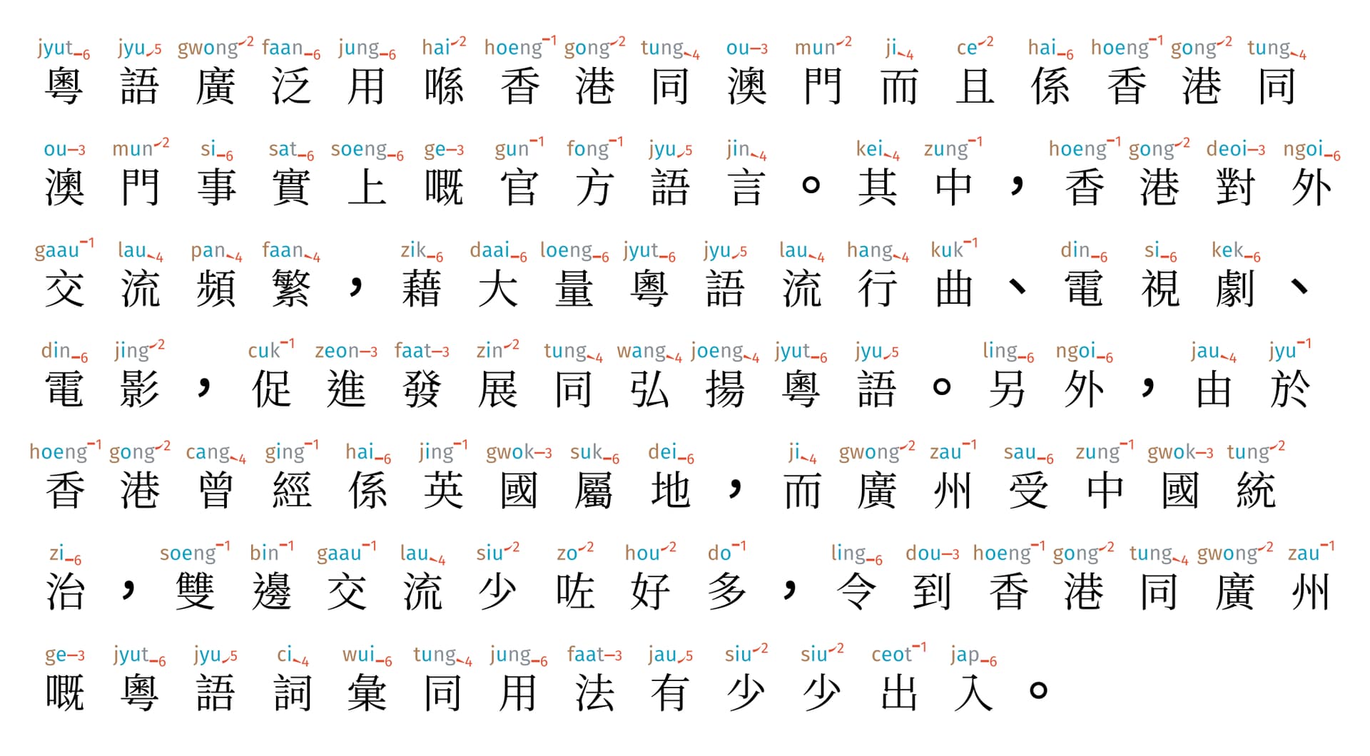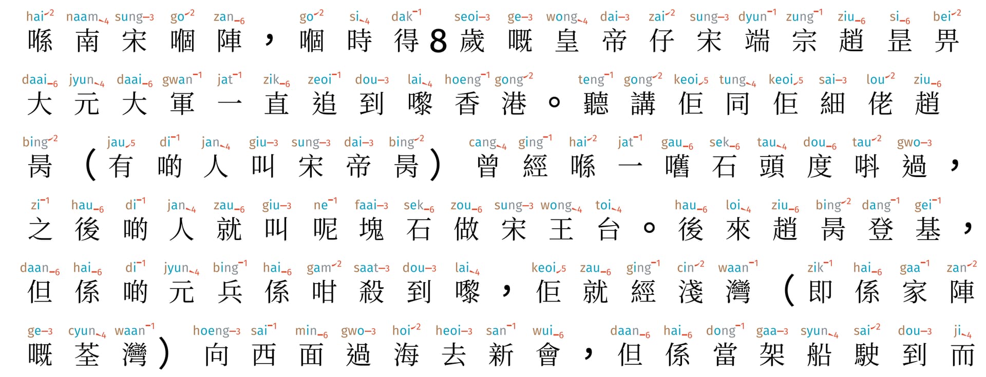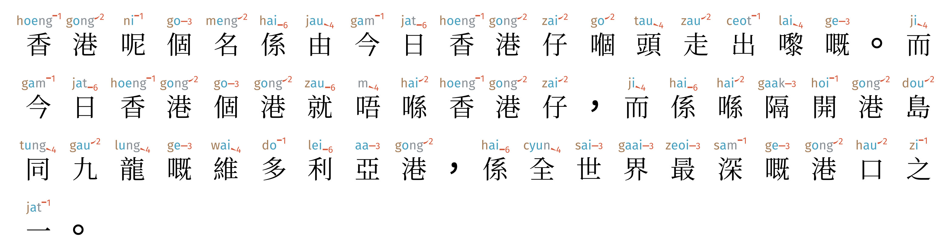 Accuracy of Jyutping: 5,275 / 5,283 characters (99.85%)