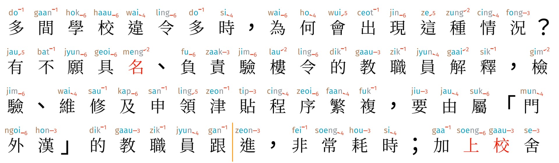 行 accounted for 2; haang4 should be hang4.
