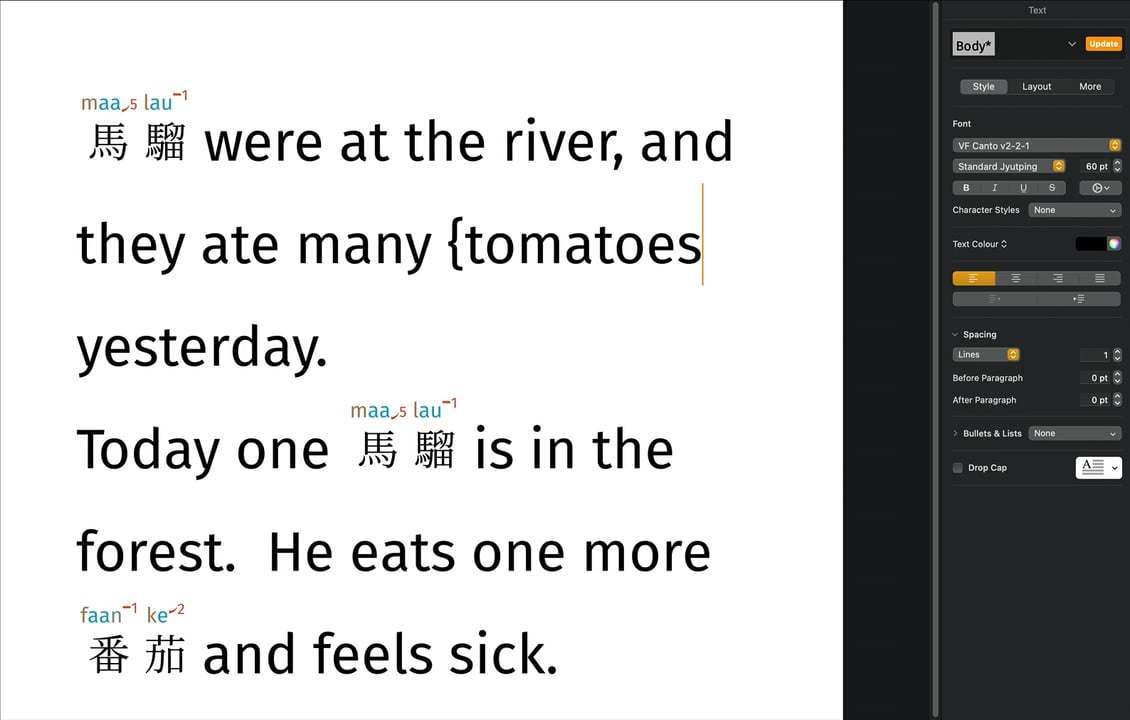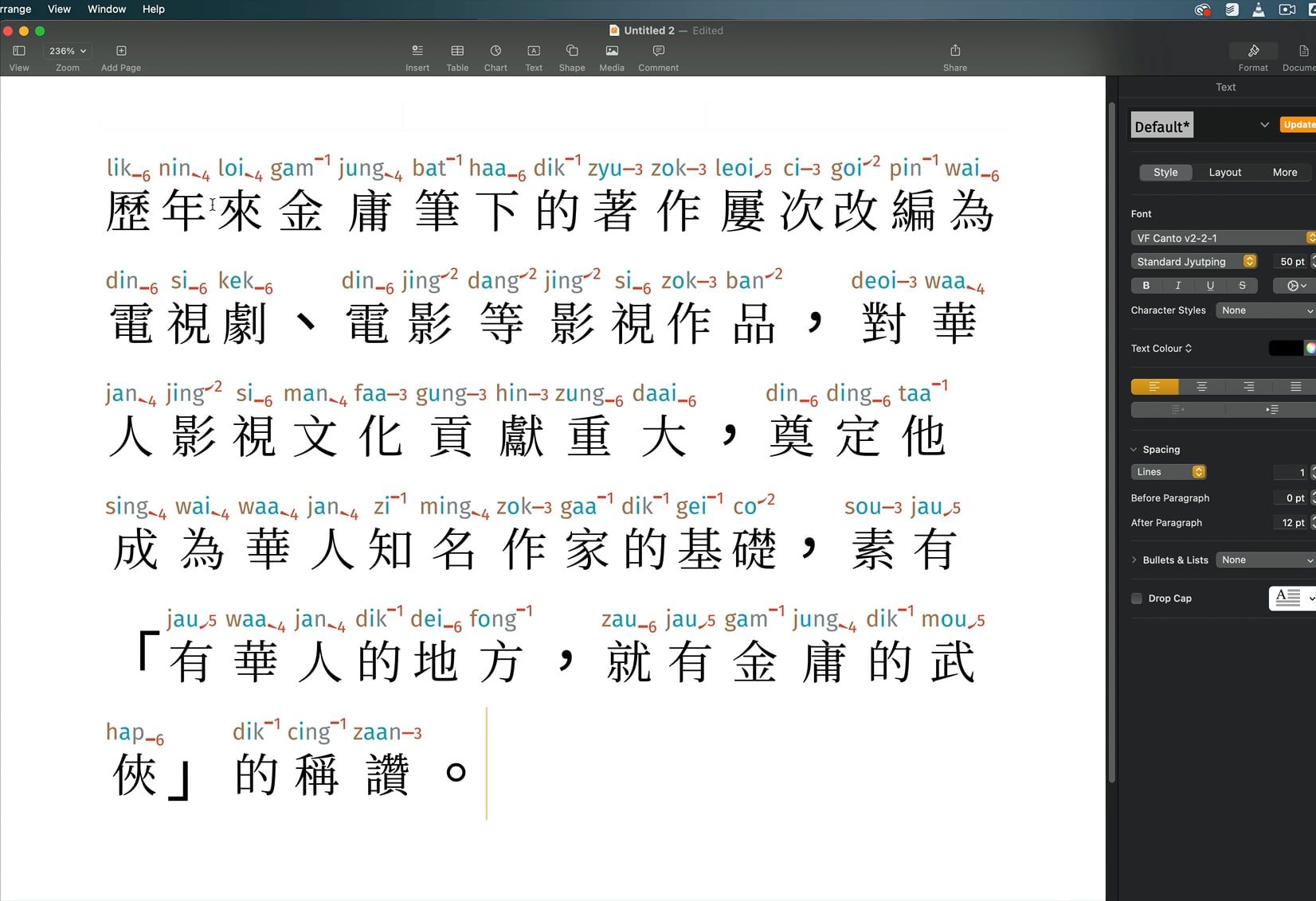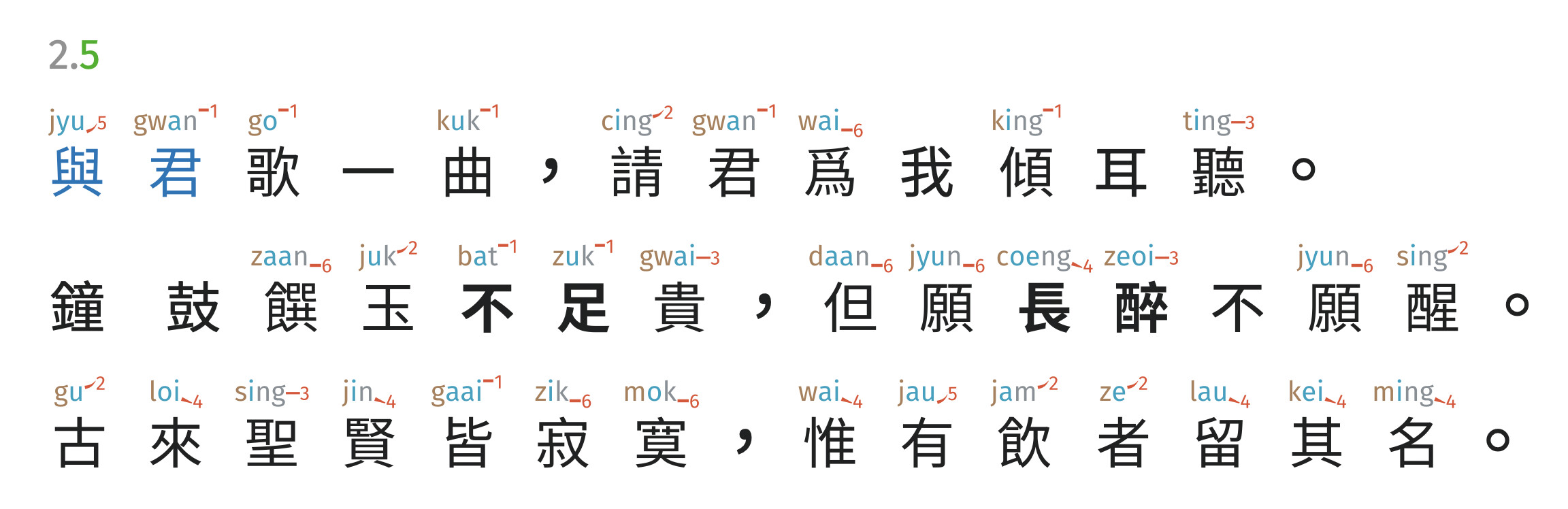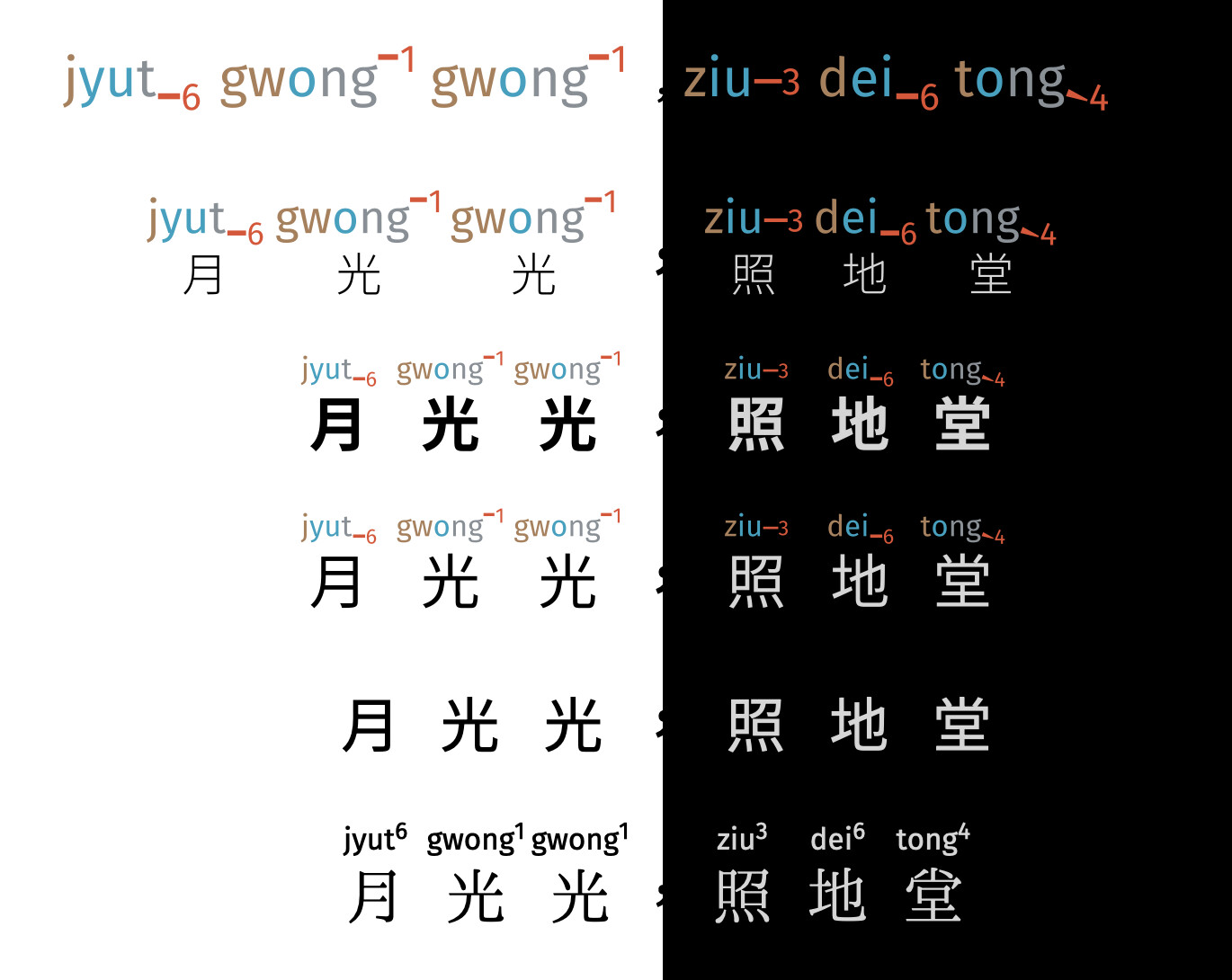 All-in-all this is a very interesting and important solve to the “ugly Jyutping-annotated text” problem that I’ve been chasing down for two years, and I’ve started a blog post on its evolution. From the user’s perspective… it just looks nice, natural, and rhythm-preserving. “Do nothing” is hard.