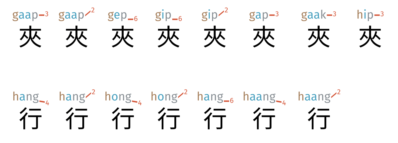 The advantage of the Dry format is that it requires very little effort to generate, yet implicitly contains the pronunciation for each character. The major downside, however, is that to make explicit this pronunciation requires access to ExCantonese, an Elixir programmer, and Elixir is decidedly a non-mainstream language