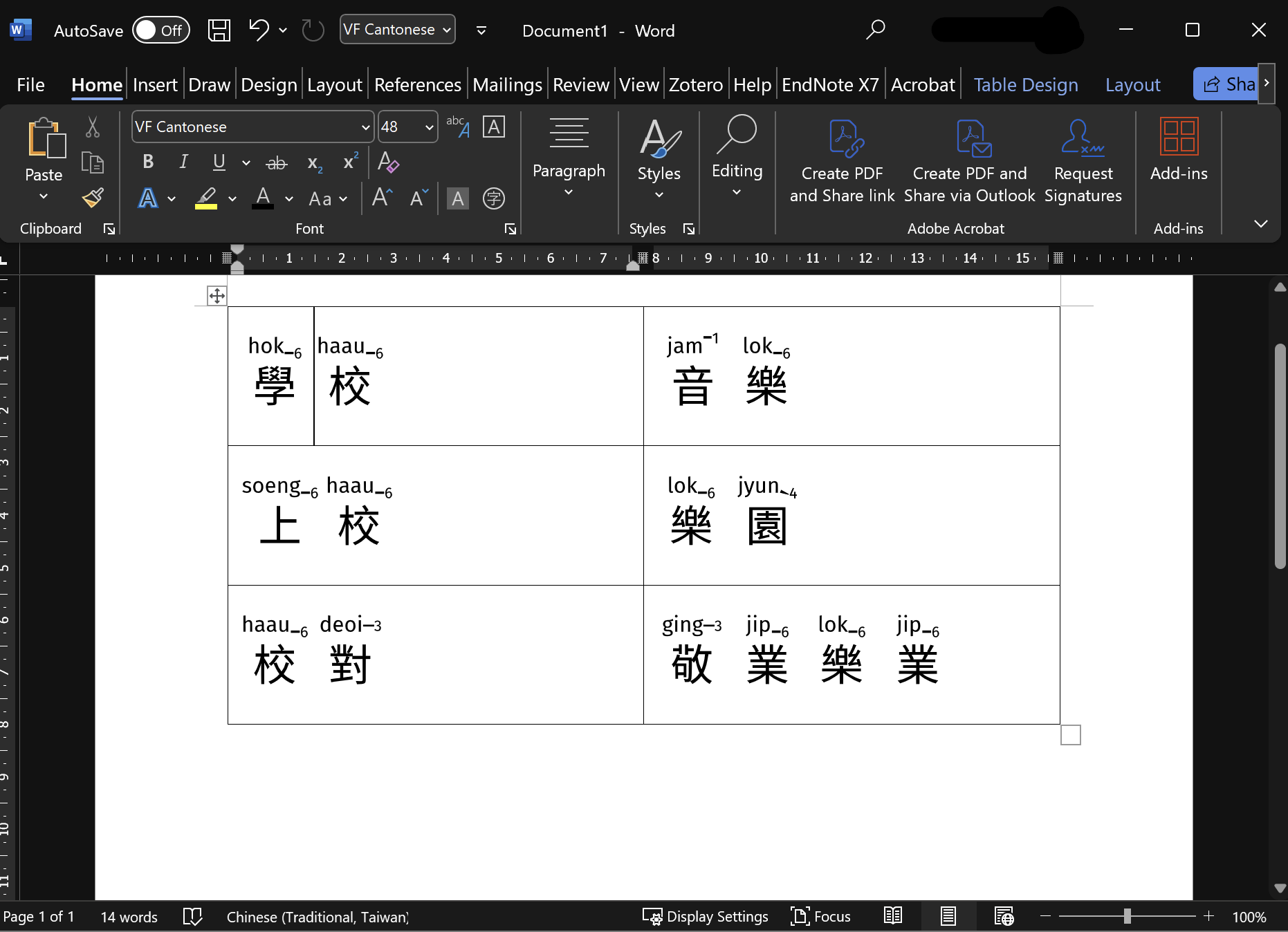 In Word it seems to be only displaying monochrome jyutping, and the phrase matching didn’t work: