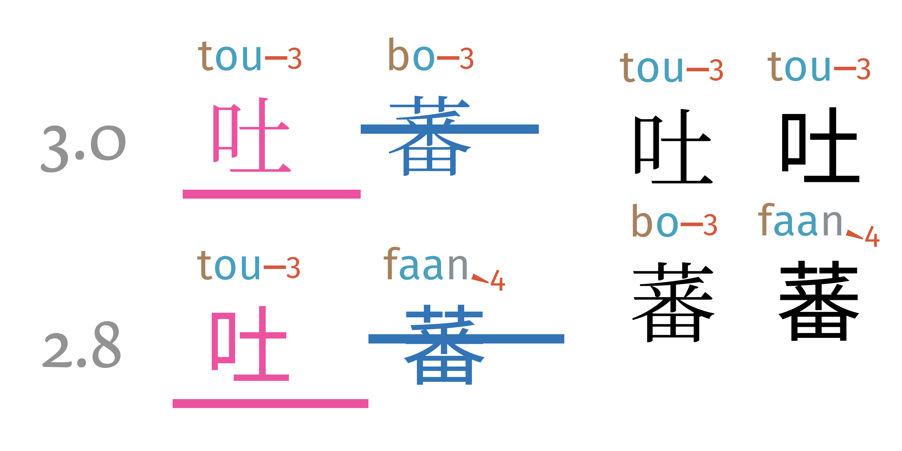 - incorrect defaults. These are breaking changes that needs to happen in order for the Font to align with what Jyutping.org proposes (e.g., laak3)