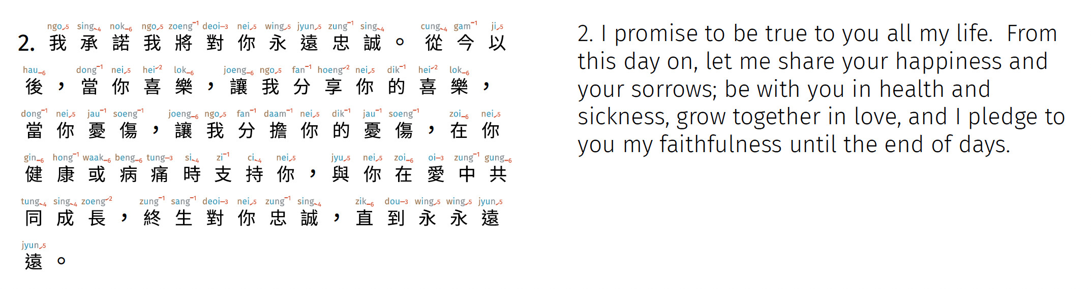 - description: wedding vows in Traditional Chinese / Jyutping and English. The first page contains the legal vows in Hong Kong according to the Marriage Ordinance.